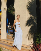 The Legacy Maxi Dress is an elevated version of our bestselling cassini dress. Exquisitely designed with a striking cut out detail and a circular design, it's the perfect ensemble for any night out. Feel sophisticated and luxurious when wearing this one-of-a-kind piece.